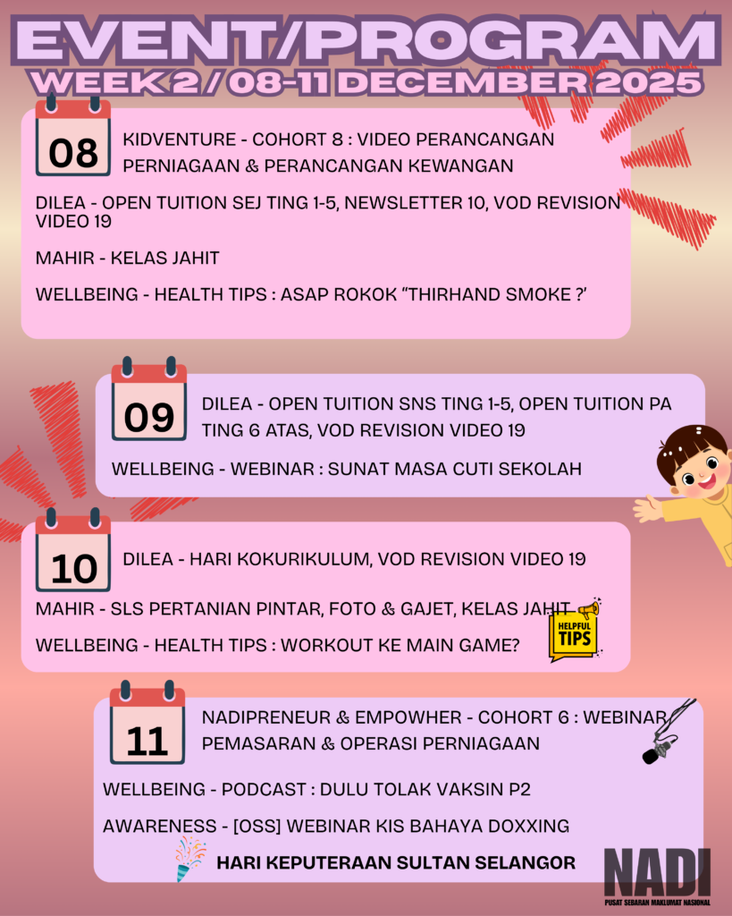 MAKLUMAN EVENT/ PROGRAM MINGGU KE-2 BULAN DISEMBER 2025