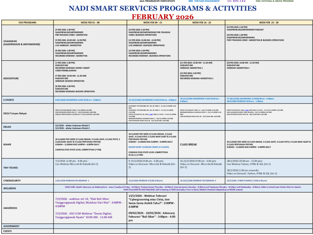 TAKWIM PERKHIDMATAN PINTAR NADI BULAN FEBRUARI 2026