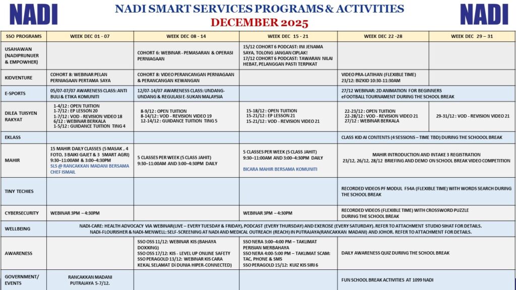 TAKWIM PERKHIDMATAN PINTAR NADI BULAN NOVEMBER 2025