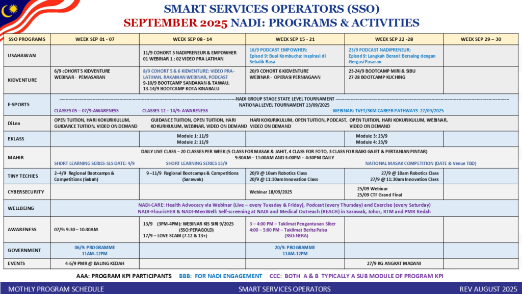 TAKWIM PERKHIDMATAN PINTAR NADI BULAN SEPTEMBER 2025